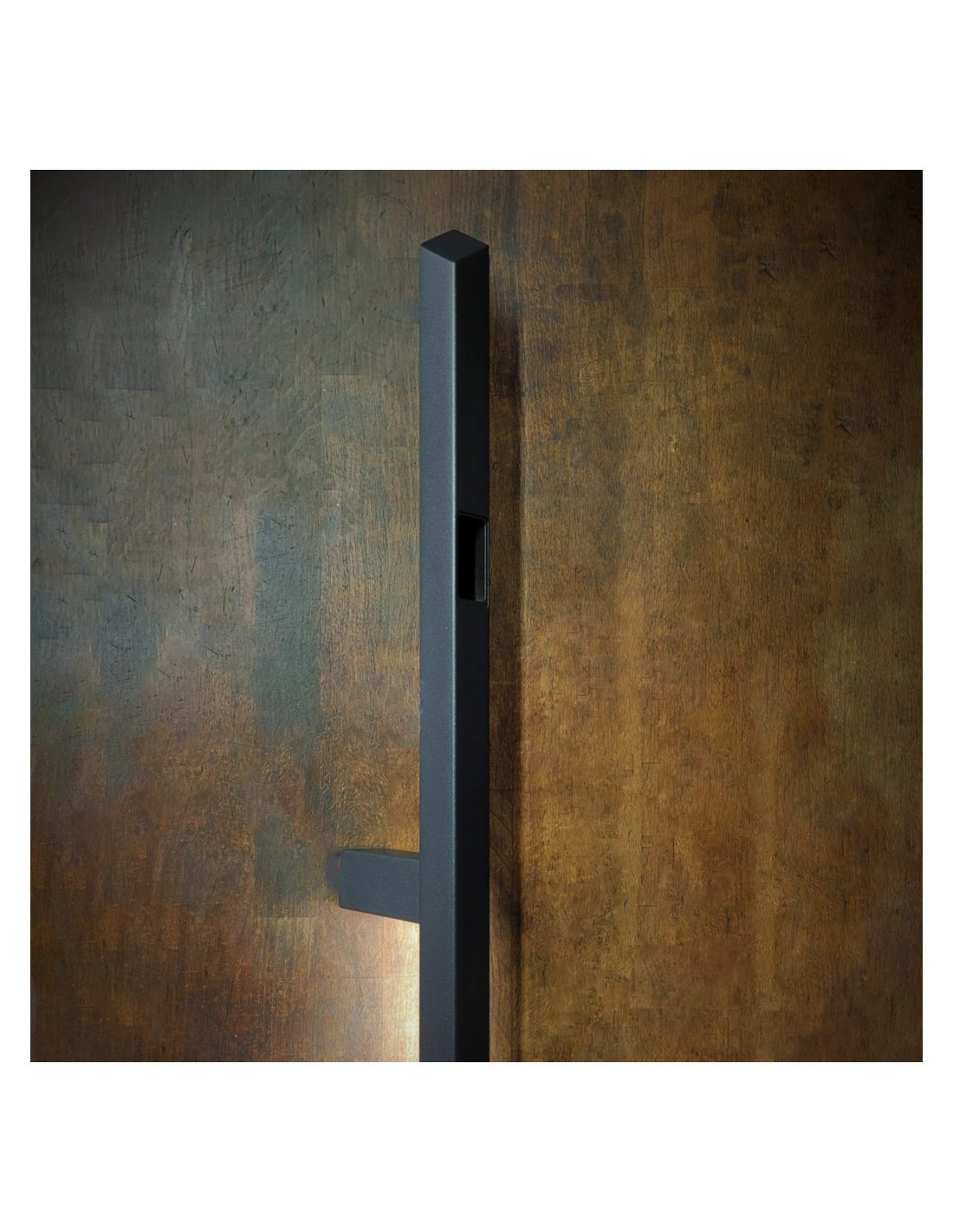 Λαβή πόρτας από ανοξείδωτο ατσάλι σε σχήμα διαμαντιού με βάσεις 35 μοιρών, θέση για σαρωτή δακτυλικών αποτυπωμάτων και φώτα LED.