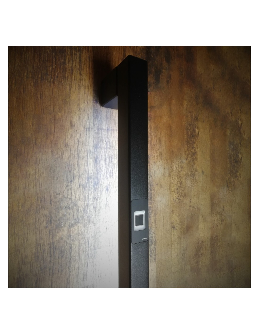 Τετράγωνη λαβή πόρτας από ανοξείδωτο ατσάλι με βιδωτές βάσεις στο πάνω και κάτω μέρος και σαρωτή δακτυλικών αποτυπωμάτων.