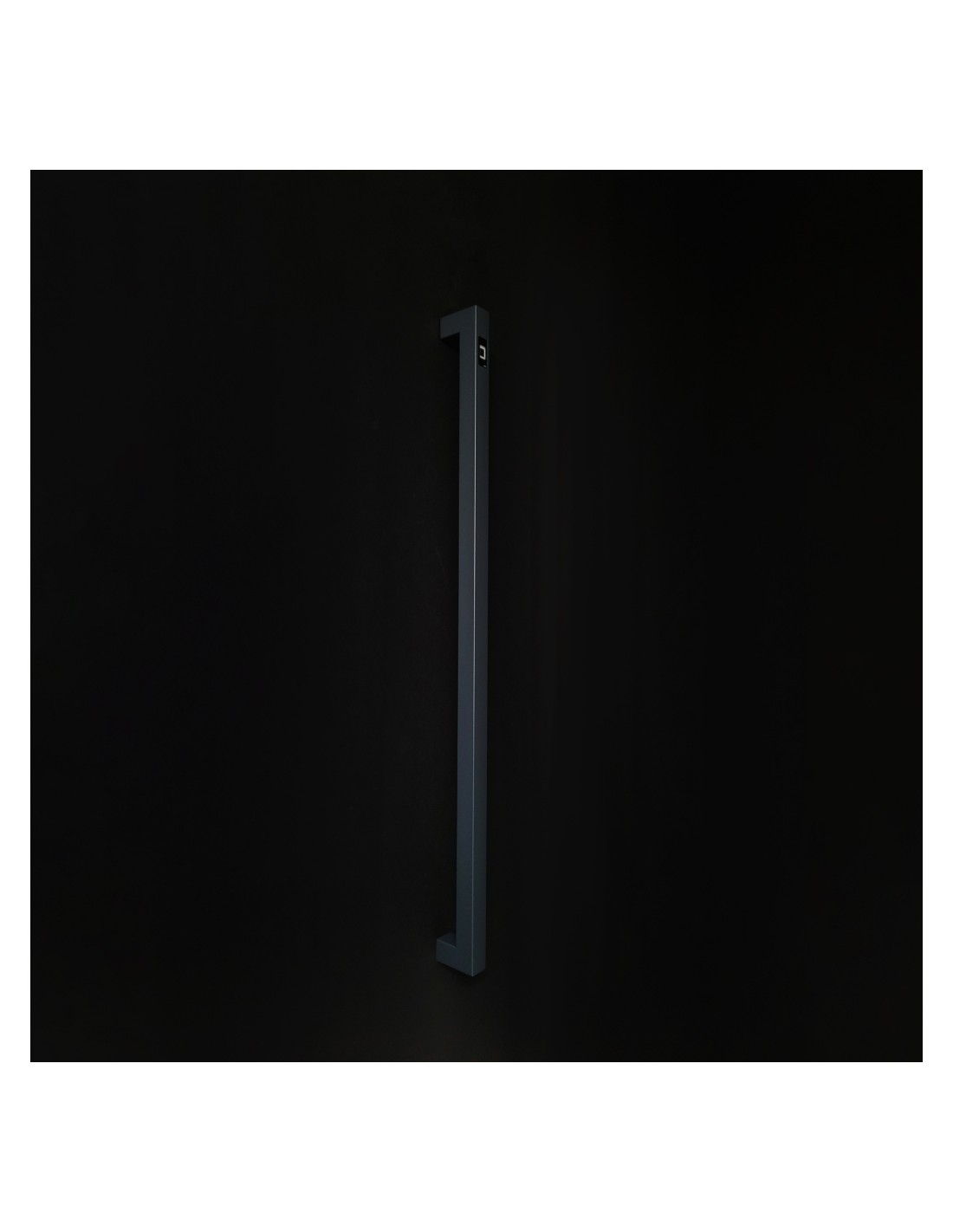 Τετράγωνη λαβή πόρτας από ανοξείδωτο ατσάλι με συγκολλημένες βάσεις στο πάνω και κάτω μέρος και σαρωτή δακτυλικών αποτυπωμάτων.