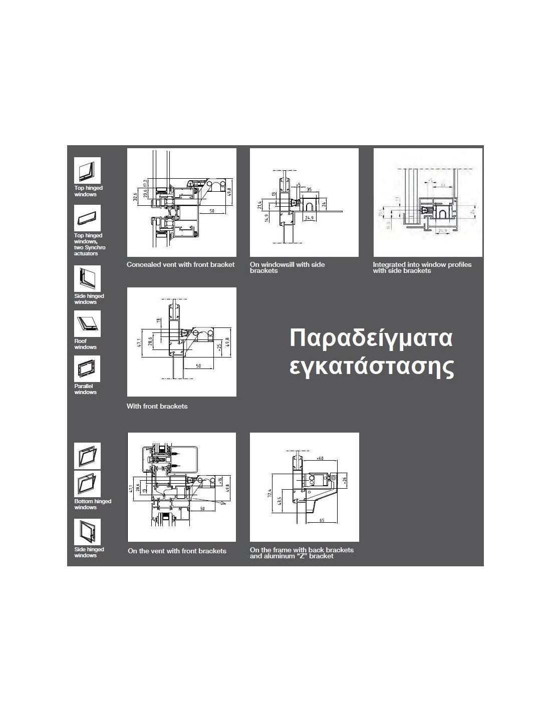 - The SYNCHRO NANO versions are equipped with a built-in speed synchronization control board, allowing the installation of more than one mechanism on the same vent, without the need for any external control unit (up to 4 mechanisms).